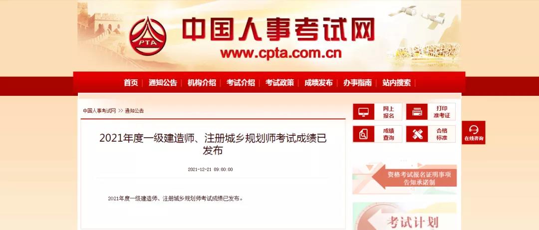 进入之后里面默认的是2021年,需要我们在左侧找到“一级建造师执业资格考试(09月)2021年12月21日发布”进行查询。