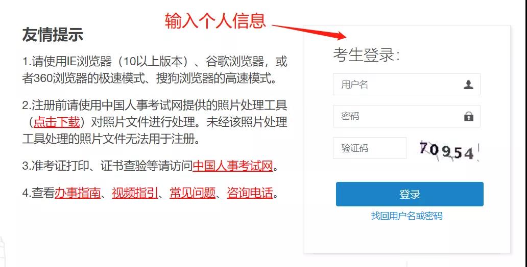 进入全国专业技术人员资格考试报名服务平台,之后我们需要输入自己的个人信息。包含自己的“用户名”和“密码”,还需输入网站的验证码,就能进入已经公布成绩的考试页面。