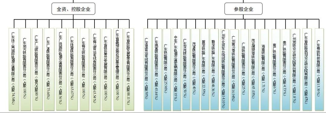 广东省铁路建设投资集团有限公司成立于2005年。集团下辖广东省铁路集团有限公司、广东地方铁路有限责任公司、广东粤铁经济发展有限公司、广东珠三角城际轨道交通有限公司、广梅汕铁路有限公司、广东三茂铁路股份有限公司、广东三茂铁路实业发展有限公司、广东广佛轨道交通有限公司、粤海铁路有限公司等下辖12家控股企业、17家参股企业,合并资产规模超2500亿元。