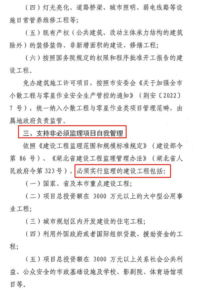 日前,荆州市住建局公布施工图审查、施工许可证、工程监理豁免清单(试行),自发布之日起试行。